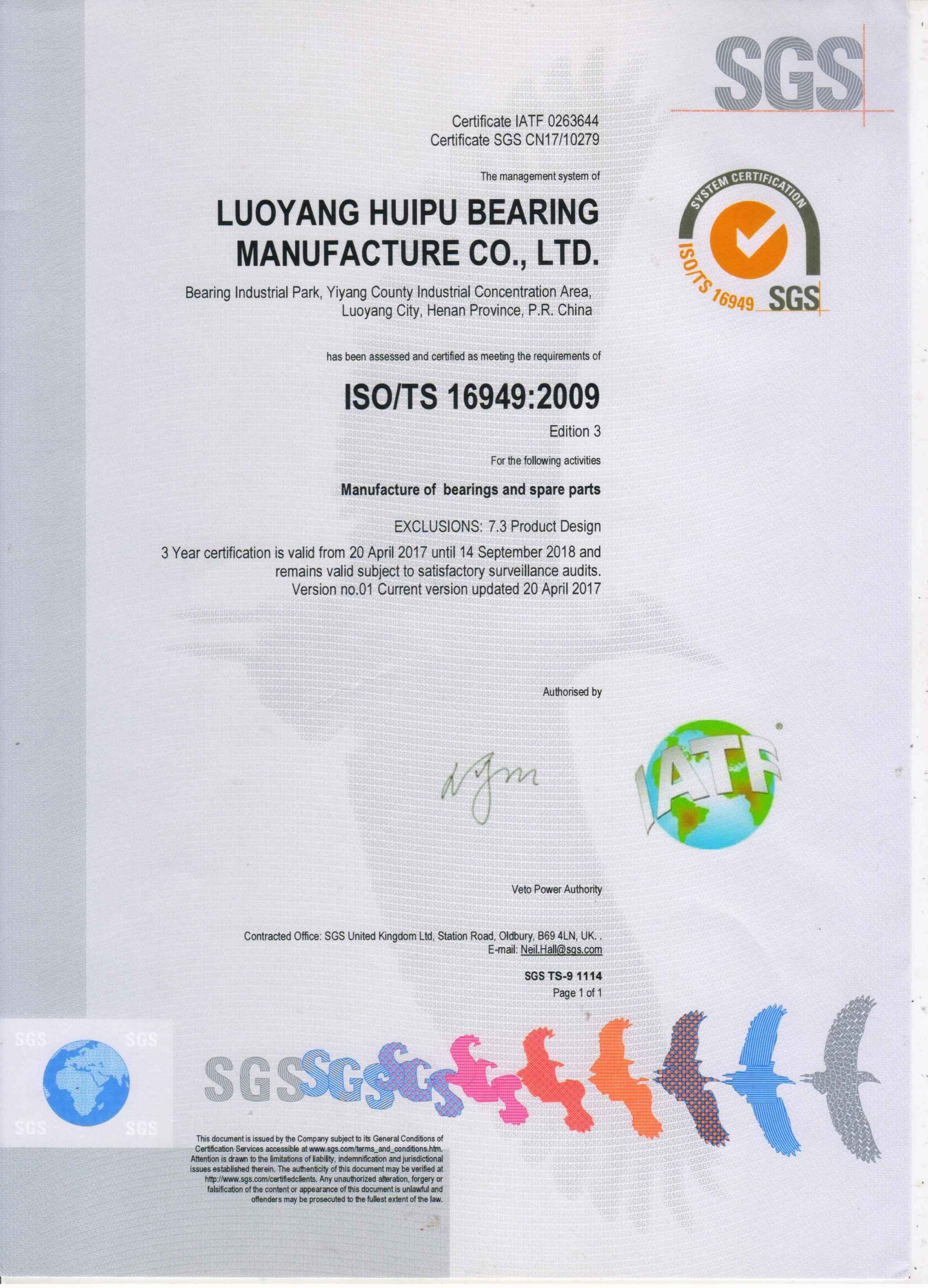 2017年4月匯普軸承順利通過TS16949質(zhì)量體系認(rèn)證