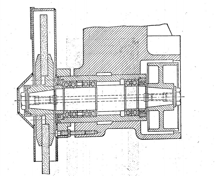 所示前支承采用雙列圓錐滾子軸承,承受徑向載荷和軸向載荷,后支承采用單列圓錐滾子軸承,這種配置可承受重載荷和較強(qiáng)的動載荷,安裝與調(diào)整性能好,但主軸轉(zhuǎn)速和精度的提高受到限制,適用于中等精度,低速與重載荷的數(shù)控機(jī)床主軸。
